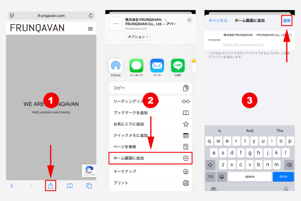展開されるメニューから「ホーム画面に追加」をタップ